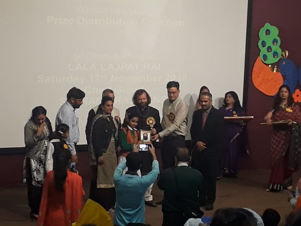 Chief Guest Hans Raj Hans Ji and Principal Madhav Vidya Niketan honoured the students with trophies.